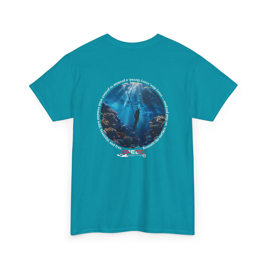 An ascending ocean dive design adorns this unisex heavy cotton tee, perfect for those who love the sea and the tranquility it brings. This tee is ideal for casual wear and can be a great addition to any beach lover's wardrobe. Suitable for adults, this tee is made with high-quality fabric that is perfect for printing, ensuring a crisp and detailed design.
